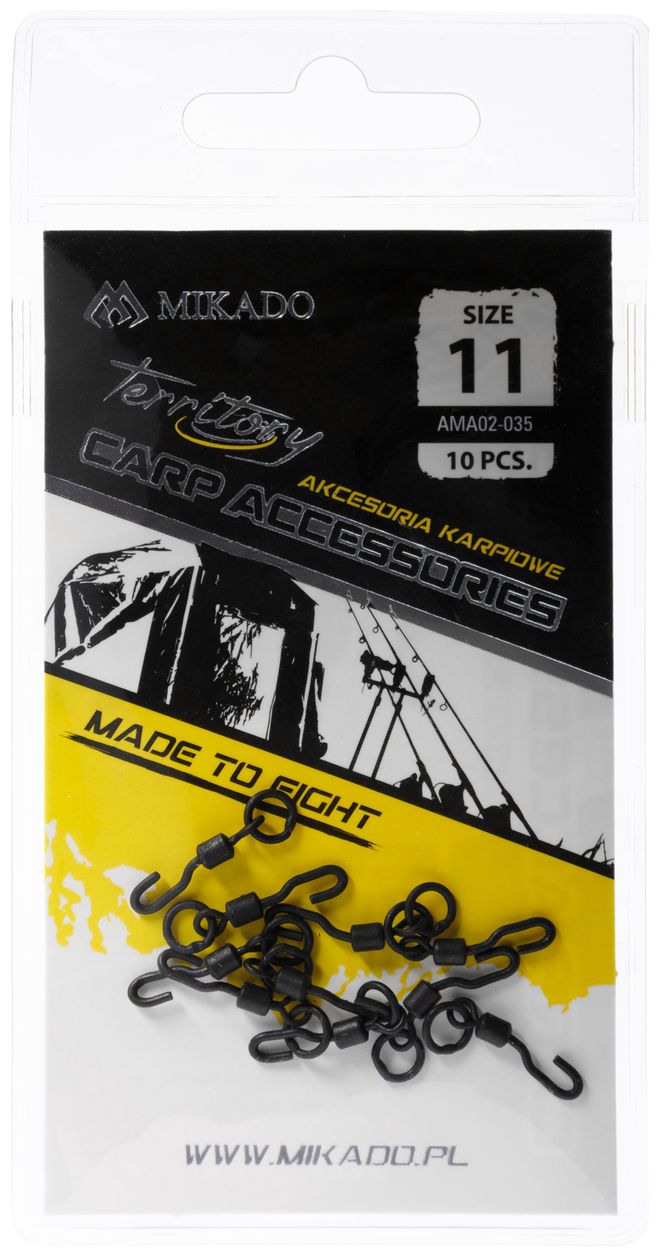 V balení najdete 10 kusů obratlíků, vhodné pro tvorbu návazců na lov kaprů a obecně pro montáže Ronnie Rig. Výrobce: Mikado.