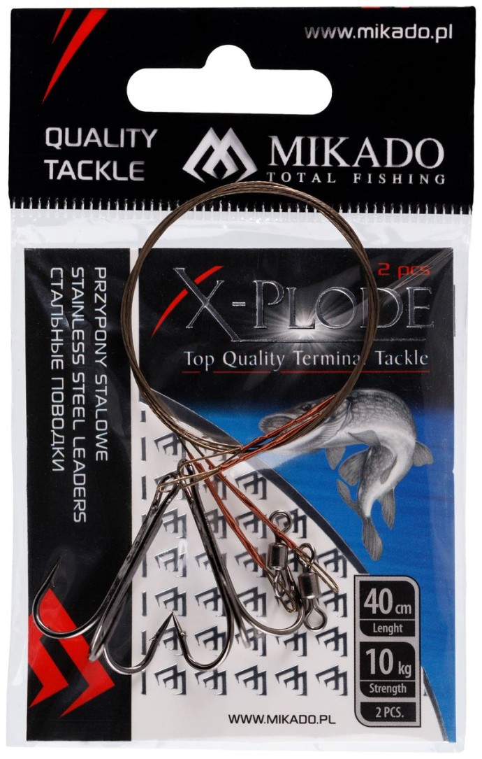 2ks Hotový návazec Mikado X-Plode Ocelové lanko se zbrojeným trojháčkem