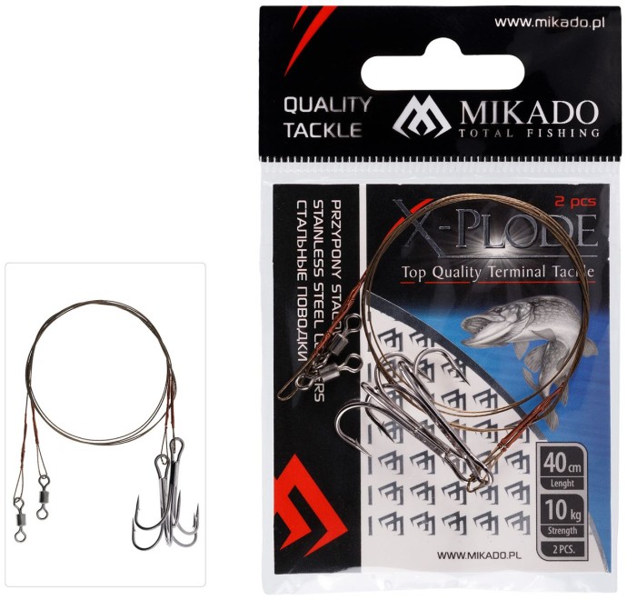 Popis 2ks Hotový návazec Mikado X-Plode Ocelové lanko se zbrojeným trojháčkem