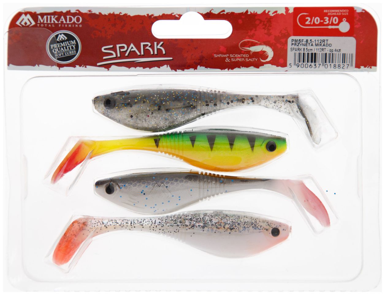 Spark je skutečně efektivní měkká nástraha se zvýšeným povrchem těla a tenkým přechodem do ocásku. Díky sloučení těchto dvou funkcí se nám podařilo získat nástrahu, která má pomalu potápivou akci a ocásek pracující za jakýchkoli podmínek.