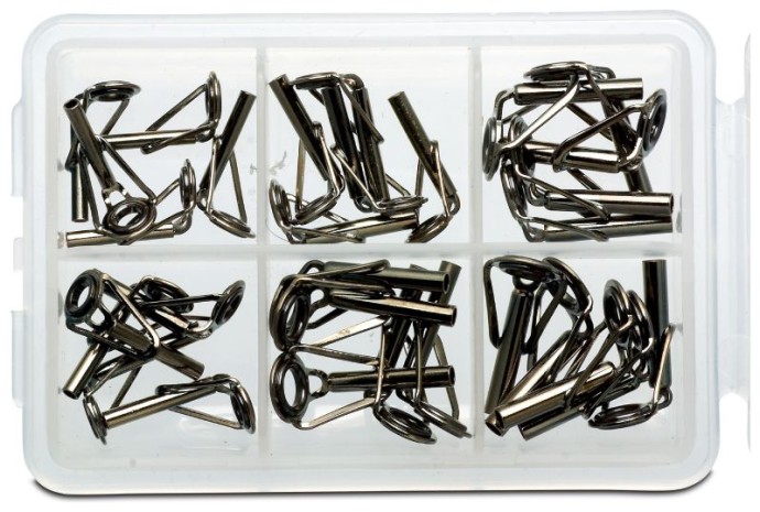 Plastová krabička obsahující 60 ks SIC oček. Titanové provedení pro všechny běžné špičky prutů.
