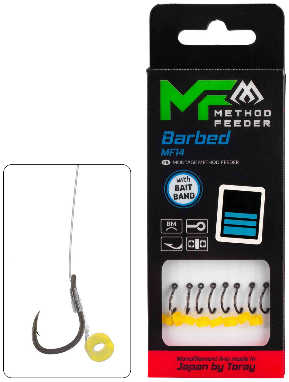 Verze s protihrotem z řady velmi pevných hotových návazců MF. Hotový návazec MF14 je osazen háčkem vhodným pro pletené šňůry i monofilní vlasce. Návazec je zakončen gumičkou (bait band / push stop / jehla) pro snadné nasazení nástrahy a rychlou výměnu. Díky protihrotu je zvýšena bezpečnost a spolehlivost záběrů a lepší držení nástrahy při zdolávání.