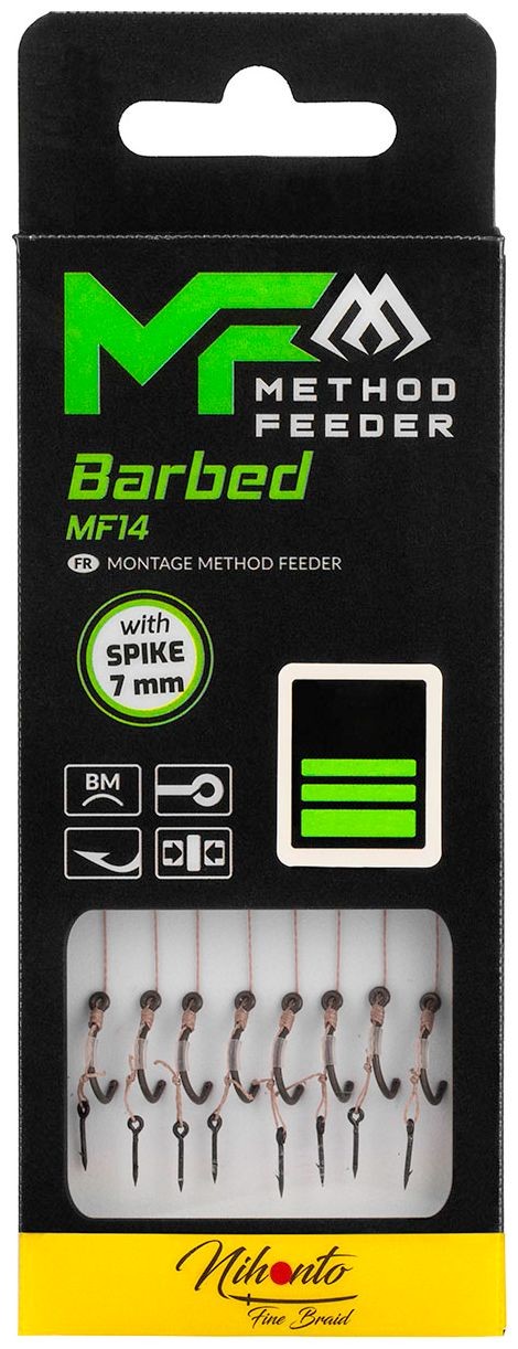 Použití: Hotové návazce MF14 s jehlou a gumičkou jsou připravené k okamžitému použití a umožňují rychlé a spolehlivé nasazení nástrahy. Díky protihrotu se zvyšuje šance na udržení ryby při zdolávání. Ideální volba pro method feeder a lov kaprovitých ryb, tam kde je potřeba pevný, diskrétní a univerzální návazec.