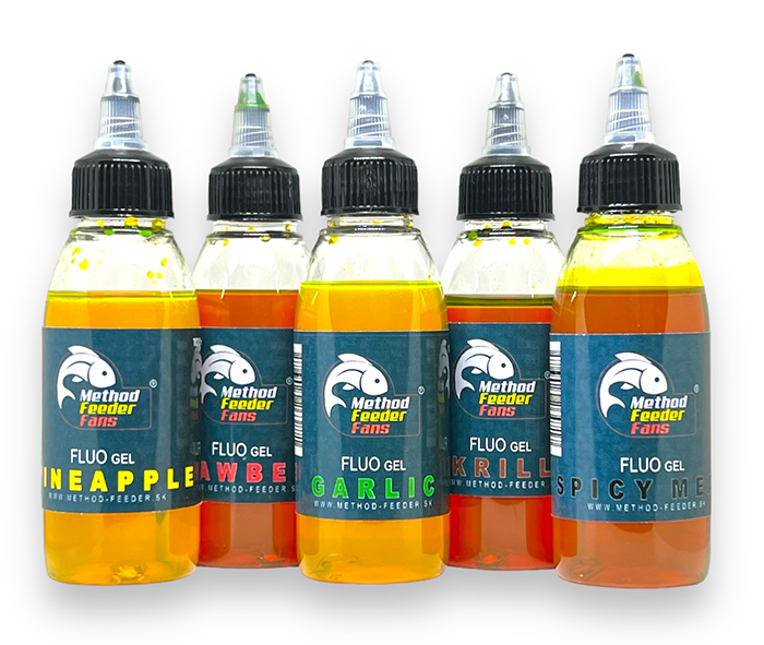 Fluo Method Gel je mimořádně koncentrovaný, hustý, lepivý a extra aromatický gel pro intenzivní zvýraznění návnady nebo nástrahy. Jeho síla je navíc znásobena přidáním speciálního FLUO barviva, které v okolí místa aplikace vytváří atraktivní barevný mrak. Způsobuje výrazný FLUO efekt a nově nerozpouští PVA.