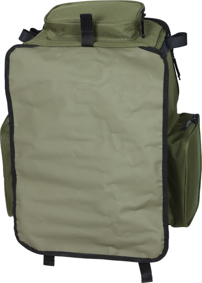 Batoh je osazen přední výklopnou větší kapsou a menší vrchní kapsa je určena k uchování dokladů, klíčů a pod, poslední dvě boční jsou hlavně určeny k fixaci prutů či podběráku, ale vejdou se tam různé rybářské doplňky.