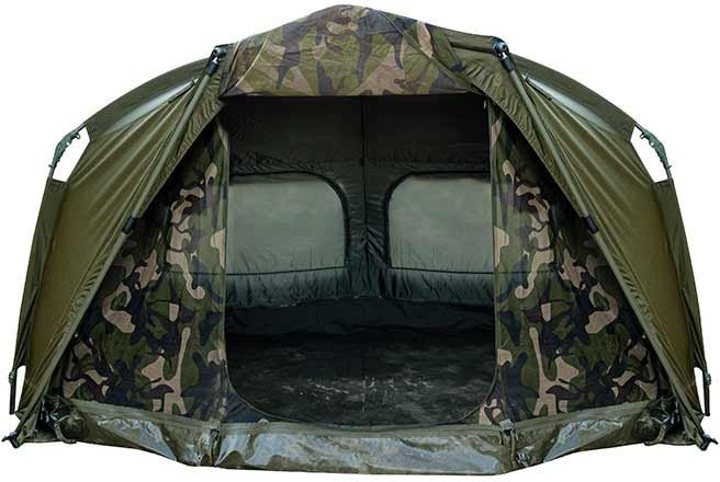 - Plný přední panel s 3 možnostmi provedení dveří: plné, průhledné a camo moskytiérová síťka, navíc síťované panely po obou stranách dveří.