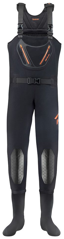 Velká náprsní kapsa je vybavena vodoodpudivými zipy a poskytuje suchý úložný prostor pro drobné příslušenství. Zadní část s vysokým loftem zvyšuje komfort a umožňuje bezproblémový dlouhotrvající rybolov. Oblast kolen je zesílena speciálními kolenními chrániči pro větší odolnost. Nastavitelný pásek zlepšuje pasování a snižuje riziko vniknutí vody. Všechny vnitřní švy jsou podlepené pro maximální bezpečnost a voděodolnost.