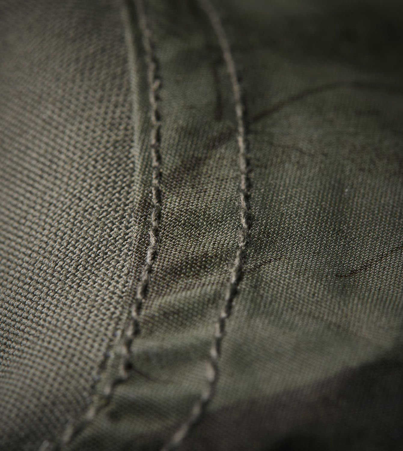 - Vnější vrstva (Shell) – pevná tkanina Taslan z polyamidu, laminovaná prodyšnou a nepromokavou membránou.