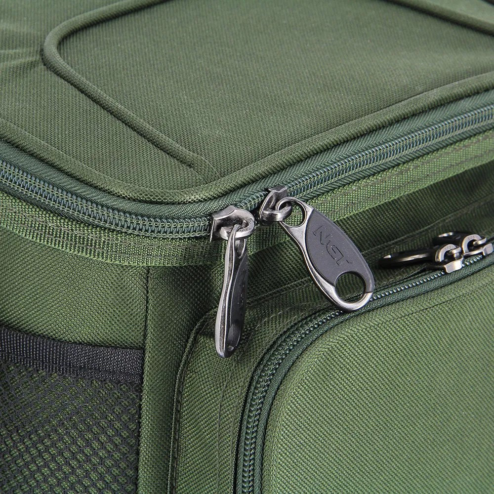 Praktická a odolná chladicí taška určená pro uchování nástrah nebo potravin v optimální teplotě během vašich rybářských výprav. Taška nabízí hlavní přihrádku na zip, dvě elastické síťované kapsy po stranách a přední kapsu na zip pro drobné vybavení. Díky nastavitelnému ramennímu popruhu se snadno přenáší a je ideální pro použití u vody i na cestách.