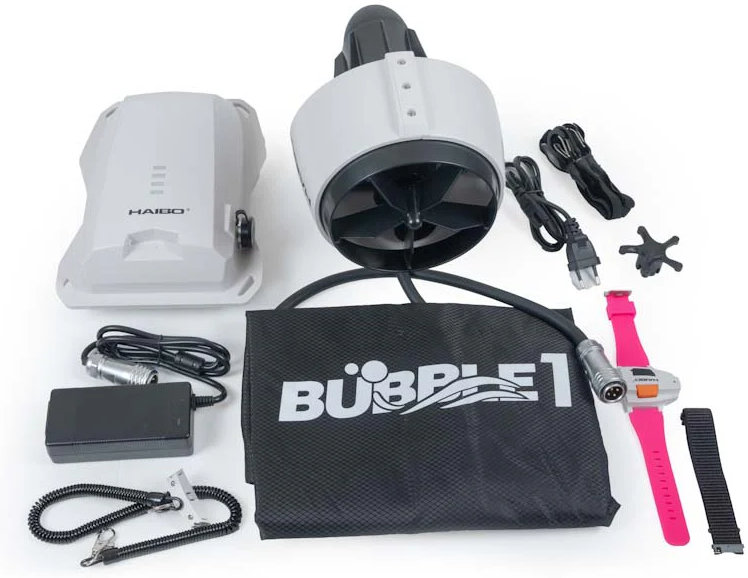 Bubble 1 je poháněna elektrickým stejnosměrným motorem s LiFePo4 baterií. Ovládání probíhá přes přiložený náramkový ovladač. LED signalizace stavu v reálném čase, snadné ovládání, stabilní a spolehlivý provoz, Bubble 1 se stane skvělým partnerem pro vaše vodní radovánky.