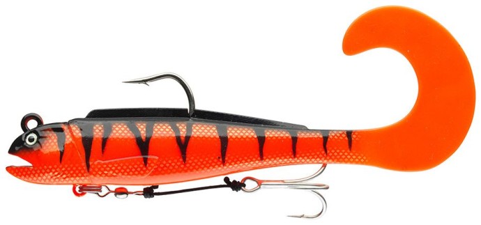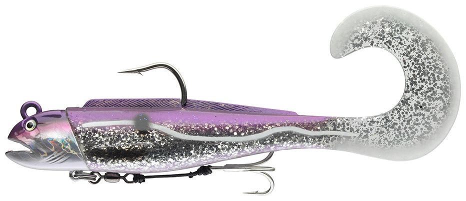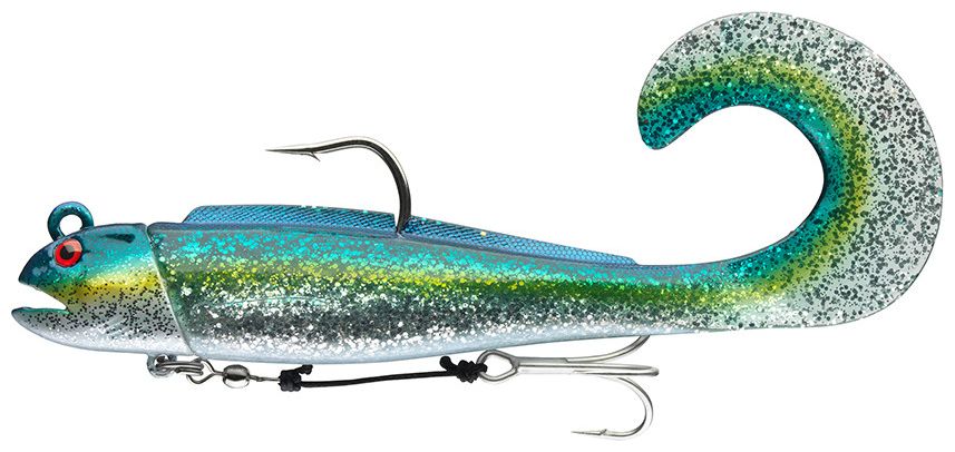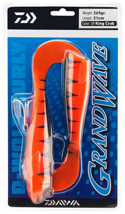 DAIWA Grandwave D-Wolf Curly je robustní mořská gumová nástraha speciálně navržená pro lov velkých dravců, jako jsou tresky a halibuti. Díky masivnímu tělu a aktivnímu kudrnatému ocasu vytváří silnou odezvu i při pomalém vedení a spolehlivě funguje i ve velkých hloubkách a silných mořských proudech, což dokáže vyprovokovat k útoku i velmi opatrné jedince. Díky masivnímu tělu a aktivnímu kudrnatému ocasu vytváří také silné a lákavé pohyby i při pomalém navíjení, které účinně vyprovokují i ty největší mořské druhy k útoku.