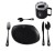 Praktická příborová sada, která je vyrobená z černé nerez oceli. Sada je dodávána v praktickém textilním obalu uzavíratelném na zip. Sada obsahuje: Polévkovou lžíci, vidličku, nůž a čajovou lžičku.