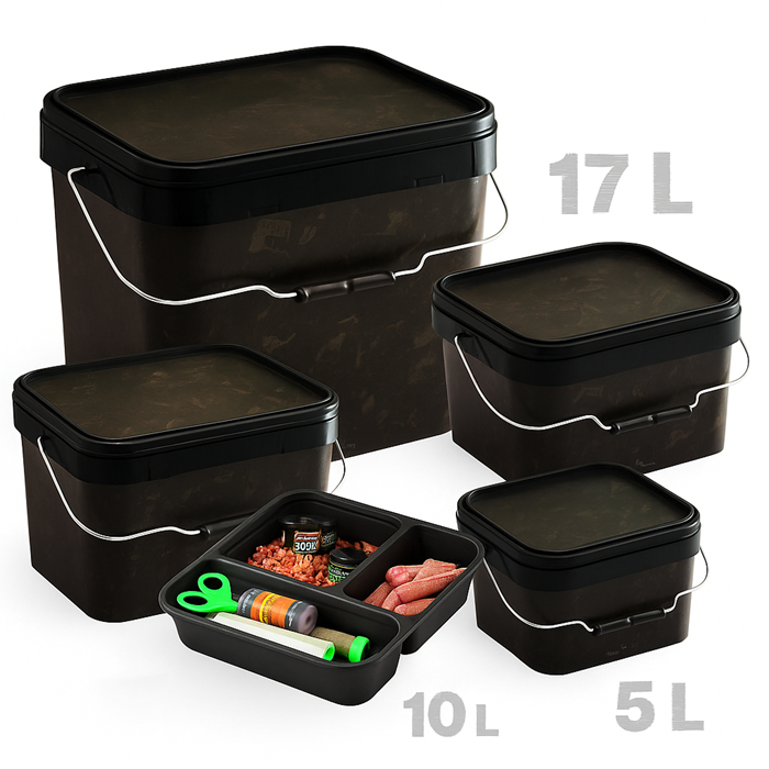 Rybářské kbelíky ZFISH Z-Core Camo Buckets jsou praktické, odolné a perfektně uzpůsobené potřebám moderních rybářů. Jsou dostupné ve třech univerzálních velikostech - 5 L, 10 L a 17 L, takže si snadno vyberete vhodnou variantu pro krátké vycházky i delší výpravy. Každý kbelík je vybaven pevným kovovým madlem pro pohodlné přenášení a stabilní manipulaci i při plném zatížení. Těsnící víko spolehlivě drží na svém místě, takže obsah zůstává chráněný proti vylití, znečištění i vysychání. Moderní design Z-Core Camo perfektně ladí s rybářskou výbavou a zároveň je nenápadný v přírodě.