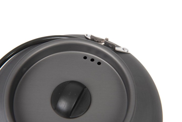 Lehká kempingová konvice s eloxovanou (anodizovanou) povrchovou úpravou a technologií rozvodu tepla, která zrychluje ohřev vody a zvyšuje jeho účinnost. Konvice je navržena pro snadné použití v terénu a při vaření v přírodě.