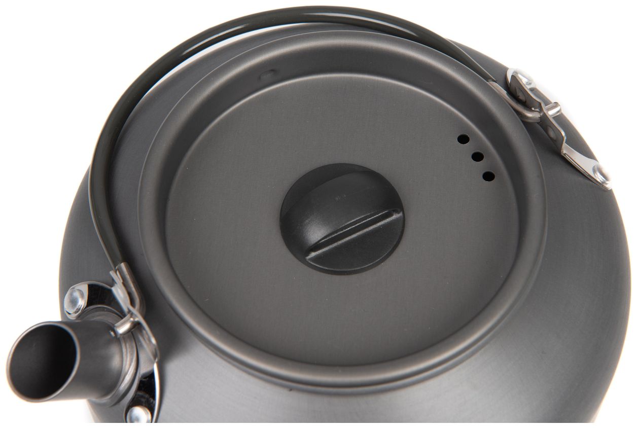 Lehká 0,9l konvice s eloxovanou povrchovou úpravou, ideální pro kempování a přípravu horkých nápojů. Konvice má sklápěcí rukojeť pro snadné skladování a je dodávána v síťovaném vaku se stahovací šňůrkou.