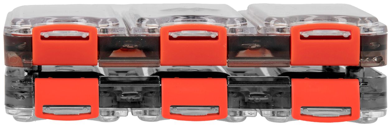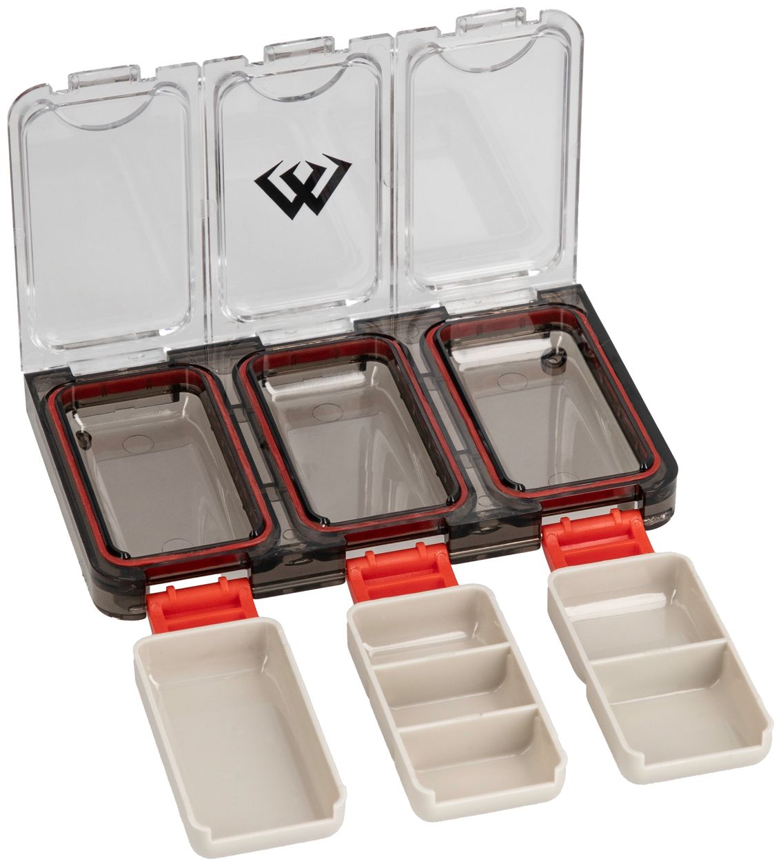 Ideální krabička na drobné vláčecí doplňky. Pojme velké množství karabinek, obratlíků a spojek. Vnitřní přepážky lze měnit podle potřeby, takže si uspořádání upravíte podle potřeby a typu drobného příslušenství.