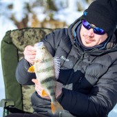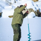 Hned po náhozu a lehkém zákrmu pár hrstmi method mixu se klukům párkrát pohnul splávek a vypadalo to, že budou mít vyhráno. V tu chvíli Honza začal přitvrzovat a rozhodl se použít nový Deeper Chirp+, který parádně monitoruje sloupec i strukturu dna pod dírkou. Musíme říct, že Deeper se ukázal jako super vychytávka, díky níž si i Filip s Rafanem mohli perfektně naměřit hloubku a mrknout se na dno pod jejich dírkama.