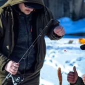 Týmy nenechaly nic náhodě, Honza si vyvrtal dírky po půlce rybníka a neustále zkoušel různé nástrahy a způsoby vertikální přívlače a lovu z propadu. Rafan s Filipem si roztáhli křesílka a vsadili na osvědčenou Rafanovu taktiku do studené vody, kterou je tavený sýr.