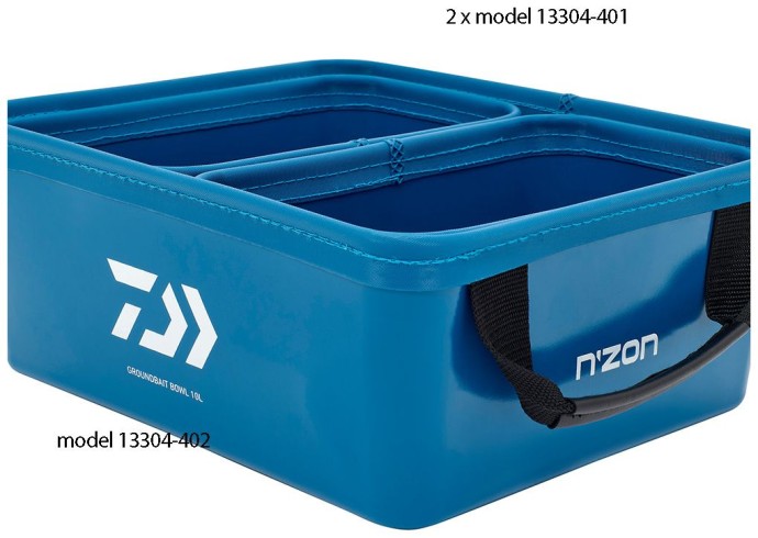 DAIWA N'Zon Groundbait Bowl 10l je odolná miska na přípravu krmiva, ideální pro feederové a běžné lovy. Větší varianta pojme dvě 5l nádoby a je vybavena dvěma držadly pro snadné přenášení. Praktický tvar a velikost umožňují pohodlnou manipulaci i přípravu většího množství krmiva přímo u vody.