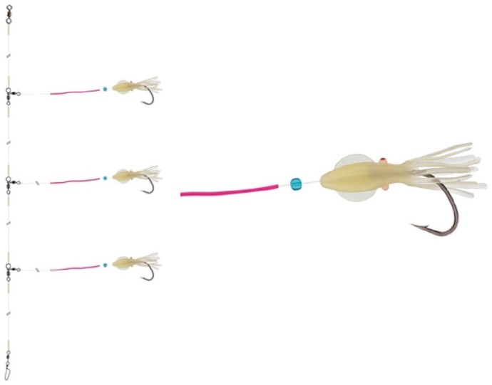 Tento návazec je vytvořený pro lov štikozubců a tresek. Velké háčky se hodí pro použití v kombinaci s přírodní návnadou a zabraňují ztrátě vašeho úlovku. Speciální rotační obratlíky na obou stranách a ochrana uzlu spolu s hadičkou u chobotničky zabraňují zamotávání návazce při klesání do velké hloubky. Perfektní volba pro lov ve středním a severním Norsku! Dodáváno s navíjecí destičkou, pro pohodlné skladování.