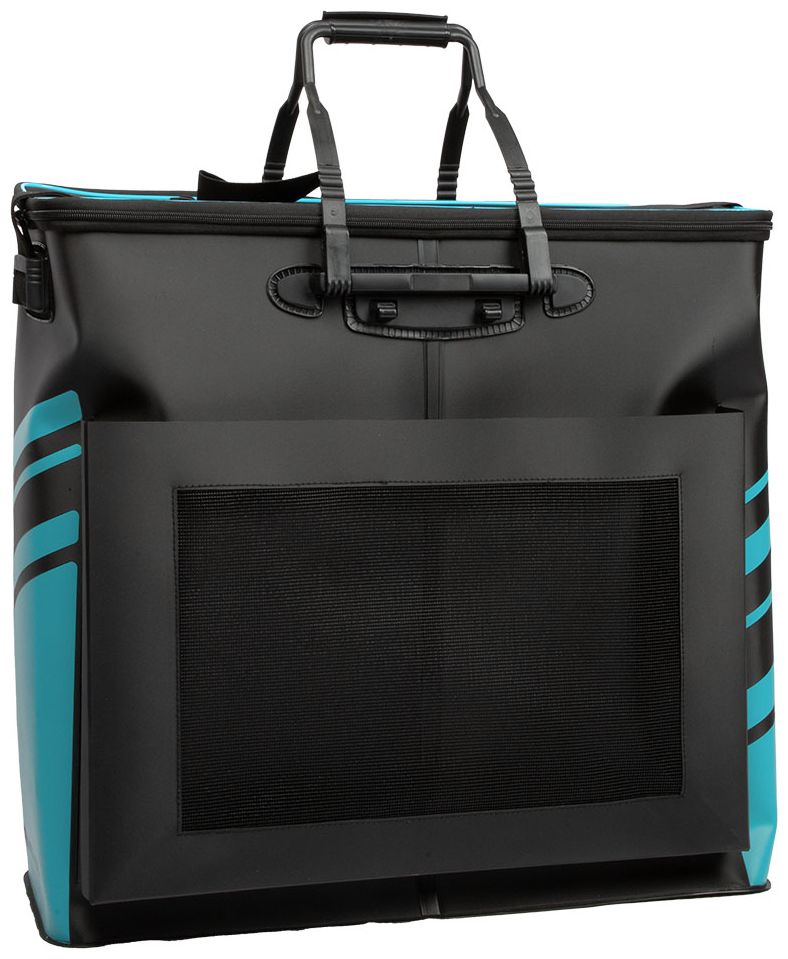 Taška je navržena tak, aby zjednodušila manipulaci s mokrými vezírky a podběrákovými hlavami, zrychlila vypouštění vody díky spodní zátce a poskytla prostor pro drobné doplňky v externí kapse.