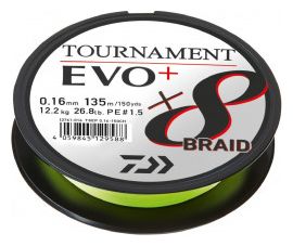 Dobře známá pletená šňůra Tournament 8 byla dále zdokonalená a vznikla verze Evo+. Zvýšené množství silikonového povrchového natěru snižuje tření při náhozu, zlepšuje dosaženou vzdálenost hodu a redukuje zvuk při průchodu očkem. Povrch verze Evo+ je odolný proti trhání a praskání i při častém použití a šňůra si udržuje kulatý profil.