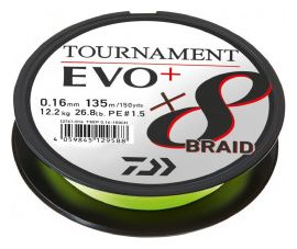 Dobře známá pletená šňůra Tournament X8 byla vylepšena do verze Evo+. Hlavní vylepšení spočívá v povrchovém potahu s vyšším množstvím silikonu, což snižuje tření při náhozu a umožňuje delší hody. Redukuje se také zvuk při průchodu očky. Nová verze si udržuje kulatý profil a povrch se netrhá ani nepraská i při častém používání.