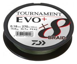 Dobře známá pletená šňůra Tournament 8 byla dále vylepšena a vznikla verze Evo+. Zejména povrchový potah je obohacen o větší množství silikonu, což snižuje tření při náhozu a umožňuje delší hody. Nová úprava také výrazně redukuje zvuk při průchodu šňůry očky prutu. Povrch verze Evo+ se nezařezává ani nepraská ani při častém používání a šňůra si udržuje kulatý průřez.