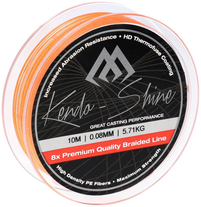 Šňůra je dodávána na jedné cívce o délce 10 m a je vyvedena v zářivé fluo oranžové barvě, která zvyšuje viditelnost nad vodou. Díky kompaktnímu návinu a pevnosti je Kendo Shine vynikající volbou nejen pro vláčení, ale i pro další techniky rybolovu, kde je potřeba tenká, pevná a odolná šňůra.