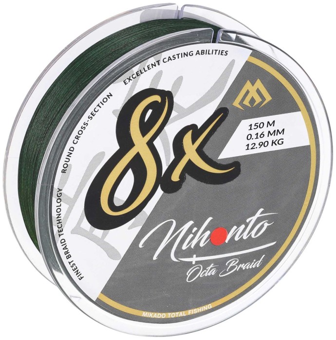 Super pevná pletená šňůra Nihonto Octa Braid od Mikado nabízí dokonalý kulatý tvar a vysokou odolnost proti oděru. Osmipramenná konstrukce z 8 mikrovláken a silikonová povrchová úprava zajišťují tichý a hladký průchod očky, tichý chod při nahazování a vynikající odolnost i v nejnáročnějších podmínkách přívlače či feederu.