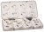 - Velikost S: obsahuje 16 špulek, průměr špulky 4,5 cm, počet špendlíků 21 ks, rozměr 21,5 × 11 × 3 cm