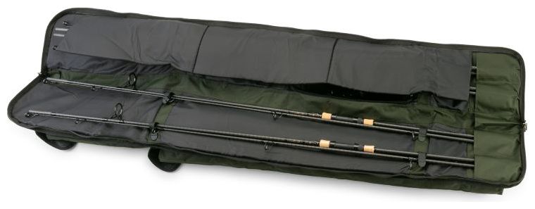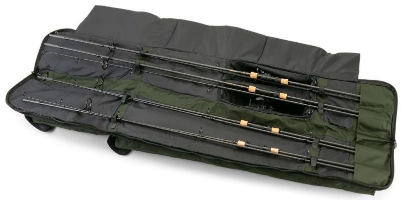 Velmi kvalitní přepravní pouzdro na pruty. Dokonalou bezpečnost zaručuje extra silné polstrování. Pouzdro umožňuje přepravu až 4 prutů, z nichž až dva mohou být osazeny navijáky, pro něž je vytvořena zvláštní bezpečnostní kapsa. Další boční kapsy jsou určeny především pro podběrák, deštník nebo další příslušenství.