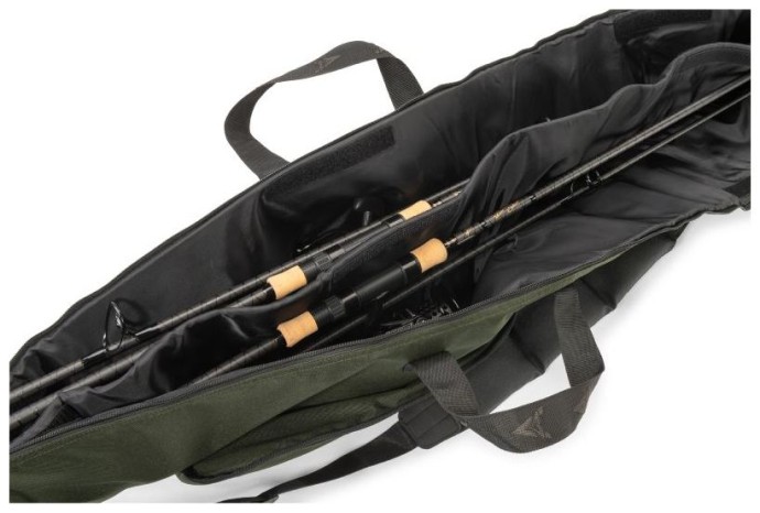 S Anaconda 2 Rod Sling můžete přepravovat dva pruty včetně navijáků. Uvnitř tašky je polstrovaná přepážka, která zajišťuje, že pruty zůstanou na svém místě. Samozřejmostí je velký, členěný prostor na naviják. Robustní dvoucestné zipy umožňují snadné otevírání a zavírání a díky dobře polstrovanému ramennímu popruhu i praktické rukojeti je přeprava vašich prutů naprosto pohodlná.