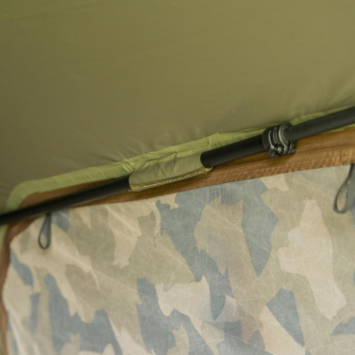 Panel je vybaven univerzálním předním panelem s pevnou výplní a velkými dveřmi s několika dvoucestnými zipy. Pro teplejší podmínky je k dispozici panel z moskitiéry proti hmyzu. Dvojité boční dveře disponují plnými i síťovanými panely, což umožňuje flexibilní vstup a maximální proudění vzduchu uvnitř přístřešku. Praktickým doplňkem jsou dva pásky na suchý zip určené pro bezpečné zafixování prutů.
