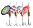 Nejklasičtější a nejoblíbenější umělá nástraha pro lov dravců. Vhodné při cíleném lovu pstruhů, okounů a jelců. Tím však není nijak limitována a při správné montáži a dostatku zkušeností dokážete zdolat i menší štiku či candáta. Osazeny velice ostrými trojháčky. Atraktivní chytlavé barevné kombinace rotačních třpytek a jejich elegantní pohyb zlákají nejednoho zvědavého dravce. Skvěle fungují i při malém ponoru a rychlosti navíjení.