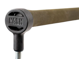 Elegantní karbonová sedla navijáku s gravírovaným logem Nash a plochým úchopem pro palec