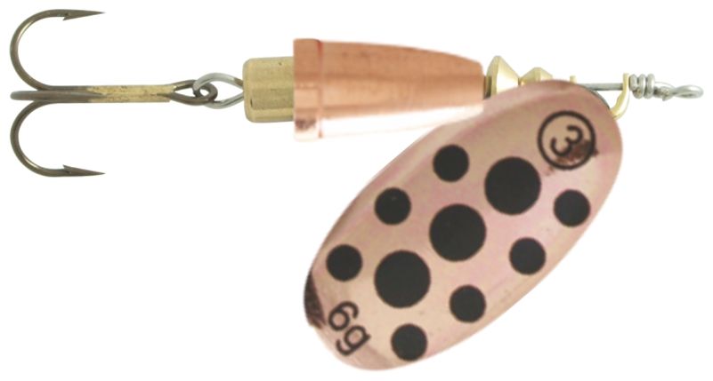 Rotační třpytka pro agresivní lov dravců. Tato nástraha vytváří ve vodě velké vibrace a hluk, který dokáže naštvat i opatrné dravce. Tělo třpytky je vždy barevně sladěné s listem. Je určena spíše do klidných řek, rybníků a přehrad. Točí se i při velmi pomalém tažení. Ze široké nabídky hmotností a barev si jistě vybere každý rybář. Značkový VMC trojháček je velmi ostrý a pevný, nehrozí tedy, že by se ryba při záběru nepíchla.