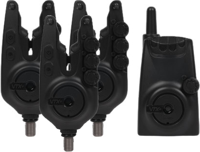 - Sada VTX+ 3+1 Bite Alarm Set – obsahuje tři signalizátory a přijímač, včetně nacvakávacích pevných pouzder, šňůrky na krk k přijímači a šroubováku.