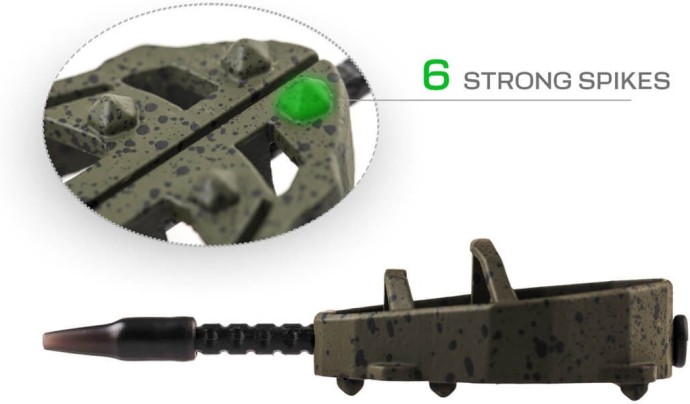 Krmítko Spider představuje novou generaci method feeder krmítek, která spojuje precizní zpracování, promyšlený design a maximální funkčnost. Na jejich vývoji se podílel tým zkušených specialistů značky ZFISH, díky čemuž vzniklo krmítko, které splňuje i ta nejvyšší očekávání moderního rybáře. Tvar Spidera zaručuje dokonalé vyvážení při nahazování a jisté dosednutí ke dnu vždy tou správnou stranou. Nově navržený nosný rám zajišťuje optimální uvolňování krmné směsi a zároveň chrání nástrahu během náhozu. Součástí konstrukce je speciální ploška pro přesné umístění nástrahy s háčkem, která zajistí, že vaše nástraha bude vždy v ideální pozici. Krmítka Spider umožňují rychlou výměnu zátěže díky vyjímatelné trubičce a otvoru na zadní straně. Stačí vysunout trubičku, uvolnit vlasec a vyměnit zátěž za jinou - bez nutnosti převazování celé sestavy. Krmítka jsou vyrobena z bezolovnatého materiálu v matně zeleném provedení s černými tečkami, které dokonale splyne s dnem a minimalizuje plašení ryb.