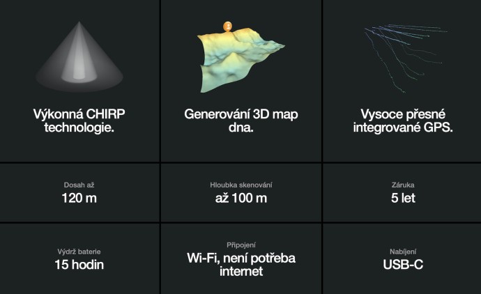 Popis Sonar Deeper Smart Fishfinder Chirp+ 3 + Skládací Solární Nabíječka ZDARMA