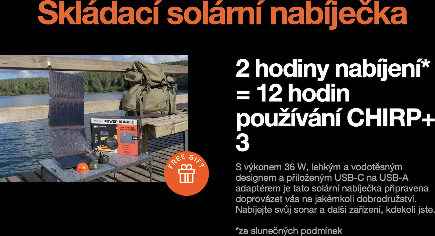 Limitovaná nabídka Power Bundle od Deeper. Tento balíček obsahuje Deeper CHIRP+ 3 nahazovací sonar a skládací solární nabíječku zdarma. Posuňte své rybaření na vyšší úroveň s bezkonkurenční přesností CHIRP+ 3 a vlastními 3D hloubkovými mapami. Spojte jej s Fish Deeper a svou skládací solární nabíječkou pro komplexní zážitek – plánujte, analyzujte a zaznamenávejte své rybářské výpravy, ať jste kdekoli.
