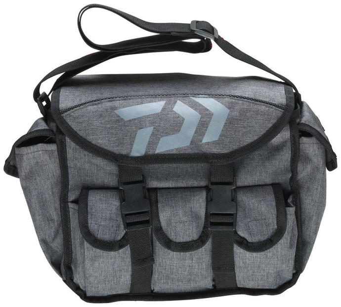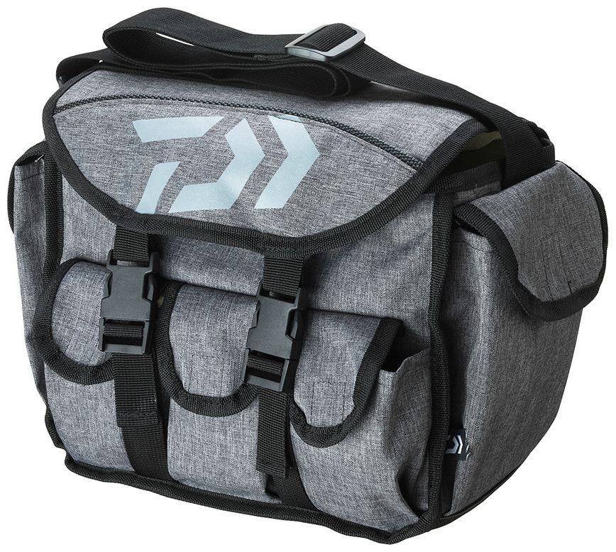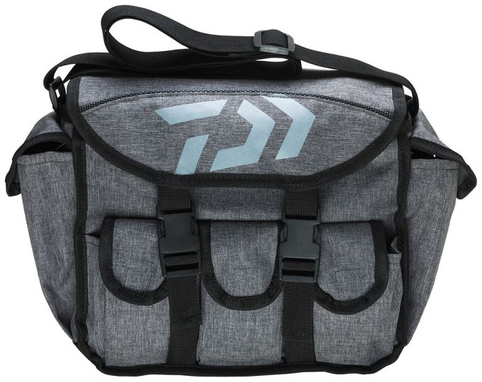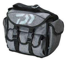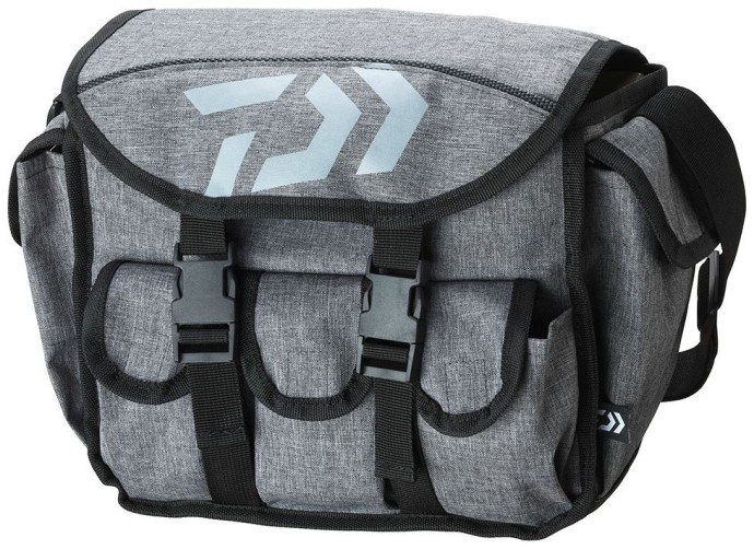 Klasická rybářská taška přes rameno pro krabičky na bižuterii, nástrahy a různé další vybavení. Hlavní přihrádka (30x15 cm) nabízí prostor až pro 3 krabičky. Tři malé přední kapsy (12x8 cm) snadno pojmou příslušenství, jako jsou nože, kleště apod. Dvě boční kapsy (17x13 cm) pojmou různé drobnosti, jako je mobilní telefon nebo rybářské doklady. Specifický šedý polyesterový materiál se snadno čistí a je vybaven vodoodpudivou funkcí, která brání rychlému promočení při krátkých deštích. Pogumované voděodolné dno eliminuje promočení od mokré země. Součástí je nastavitelný ramenní popruh. Vnitřní prostor je vystlán PVC a lze jej snadno čistit.