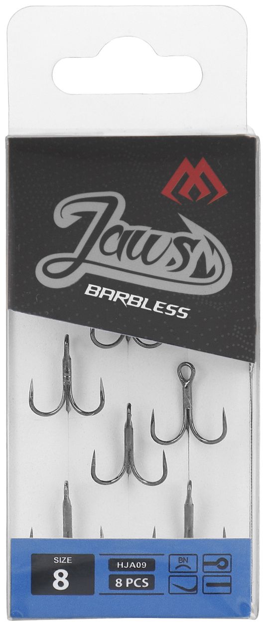 Trojháčky Mikado Jaws Barbless jsou kvalitní trojháčky určené především pro přívlač a montáže s umělými nástrahami. Jedná se o verzi bez protihrotu (barbless), která šetří rybu při zpětném nasazení a usnadňuje rychlé uvolnění háčku. Díky absenci protihrotu jsou háčky snadněji vyjímatelné a šetrnější k rybě při bezodkladném propuštění.