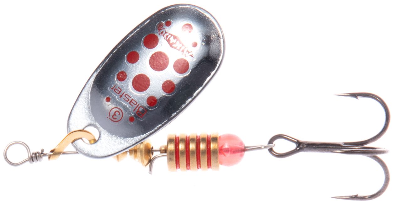 Rotační třpytka Mikado Blaster pracuje pod úhlem 45 stupňů a patří mezi univerzální třpytky doporučené pro všechny druhy vod — řeky, jezera i přehrady. Díky svému tvaru, konstrukci a provedení vytváří atraktivní záblesky a vibrace, které spolehlivě přitahují dravé ryby a efektivně imitují drobnou kořist.