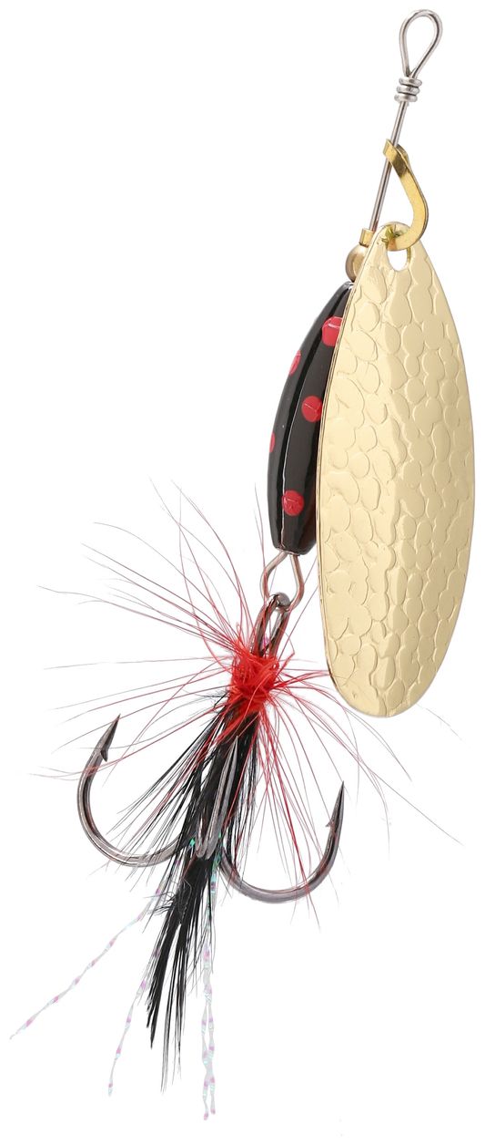 Rotační třpytka se širokým křidélkem a s těžkým, barveným tělem, které umožňuje prolovovat i těžko přístupná místa a tůně v korytě řeky. Díky masivnímu/těžšímu tělu dosáhnete lepšího vedení a delšího náběhu do vody i při proudění. Barevné tělo a přidané střapce (třásně) zvyšují vizuální i čichovou atraktivitu nástrahy a tím i četnost záběrů.