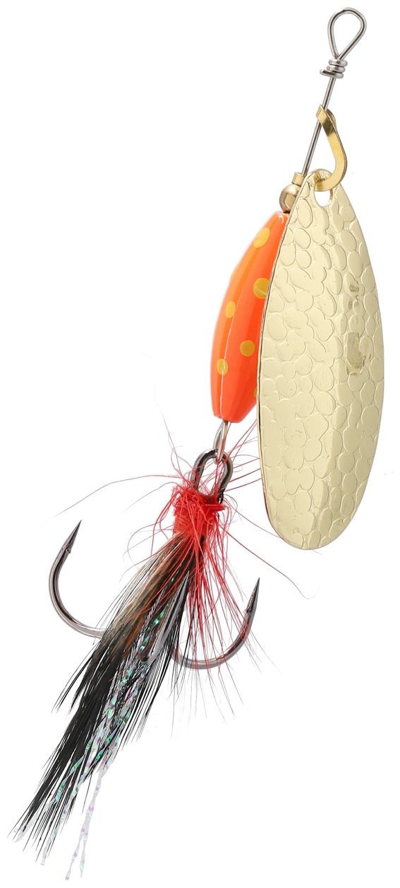 Rotační třpytka se širokým křidélkem a s těžkým, barevným tělem, které umožňuje prolovovat i těžko přístupná místa a tůně v korytě řeky. Střapce zvyšují atraktivitu nástrahy a četnost záběrů.