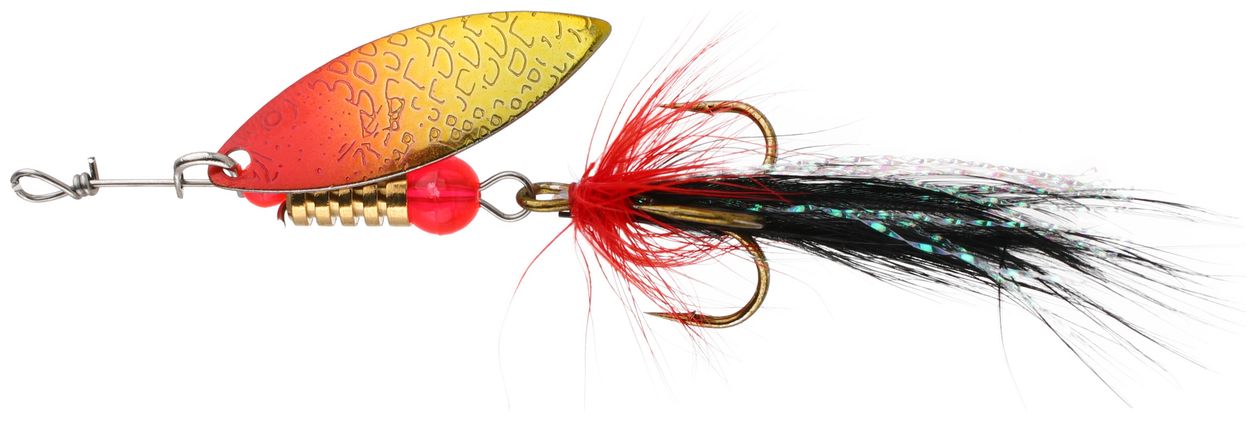 Rotační třpytka Mikado s křidélkem ve tvaru vrbového lístku. Tělo třpytky pracuje blízko těla pod úhlem přibližně 30° a věrně imituje štíhlou rybku nebo hmyz. Vhodná pro vedení při dně v hlubokých a hlubších vodách; na řekách je efektivnější při vedení proti proudu.