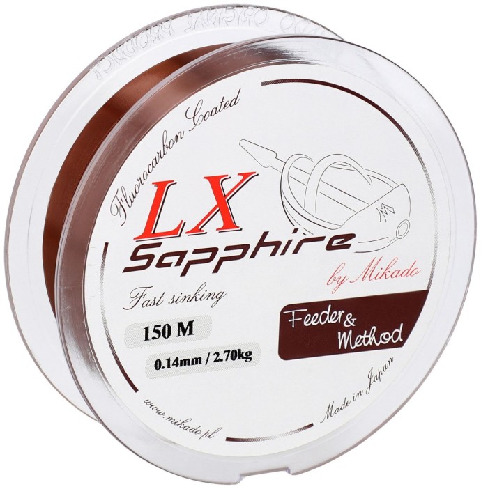 Vysoce kvalitní rybářský vlasec Mikado LX Sapphire Feeder & Method, vyrobený v Japonsku. Čirý vlasec s fluorocarbonovým potahem zajišťuje vynikající neviditelnost ve vodě. Díky speciální úpravě a kvalitnímu materiálu nabízí vynikající pevnost a odolnost při rybolovu feederem i metodou.