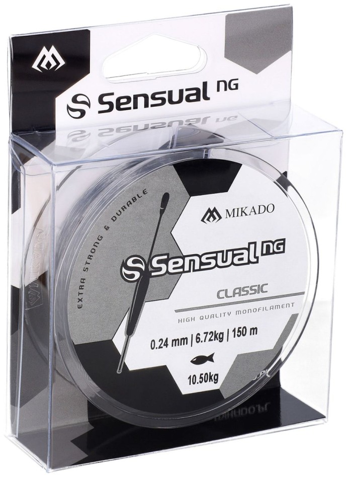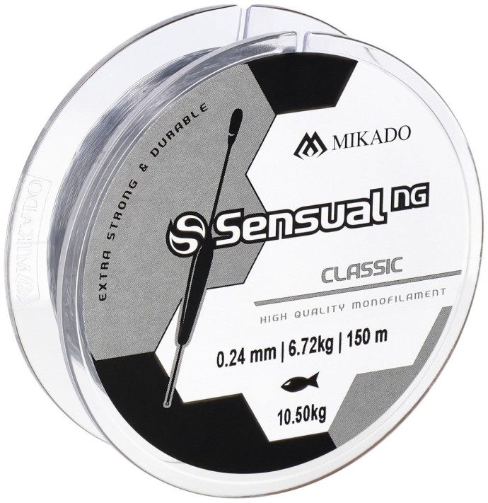 Sensual N.G. Classic je univerzální řada monofilních vlasců od značky Mikado, navržená jak pro aktivní techniky (plavaná, přívlač), tak pro méně aktivní lov na položenou (tzv. na těžko). Nabízí vysokou odolnost proti oděru, dlouhou životnost a výbornou ovladatelnost, díky čemuž přináší skvělé výsledky při různých technikách lovu.