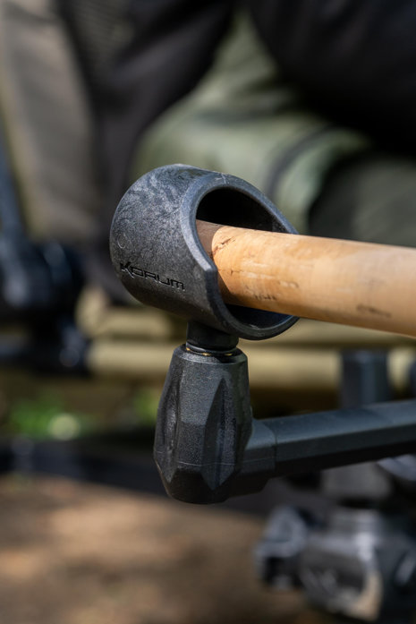 Ideální zadní podpěry při lovu s pruty vzhůru, aby se vlasec nedostal ihned do vody. Velmi pevně drží prut na místě. Lze použít se stojany, říčními tripody nebo vidličkami. Dodává se s gumovou zajišťovací podložkou a odtokovým otvorem. Silný mosazný závit.